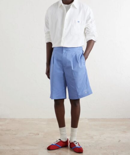Celine Straight Leg Cotton Shorts- Blue